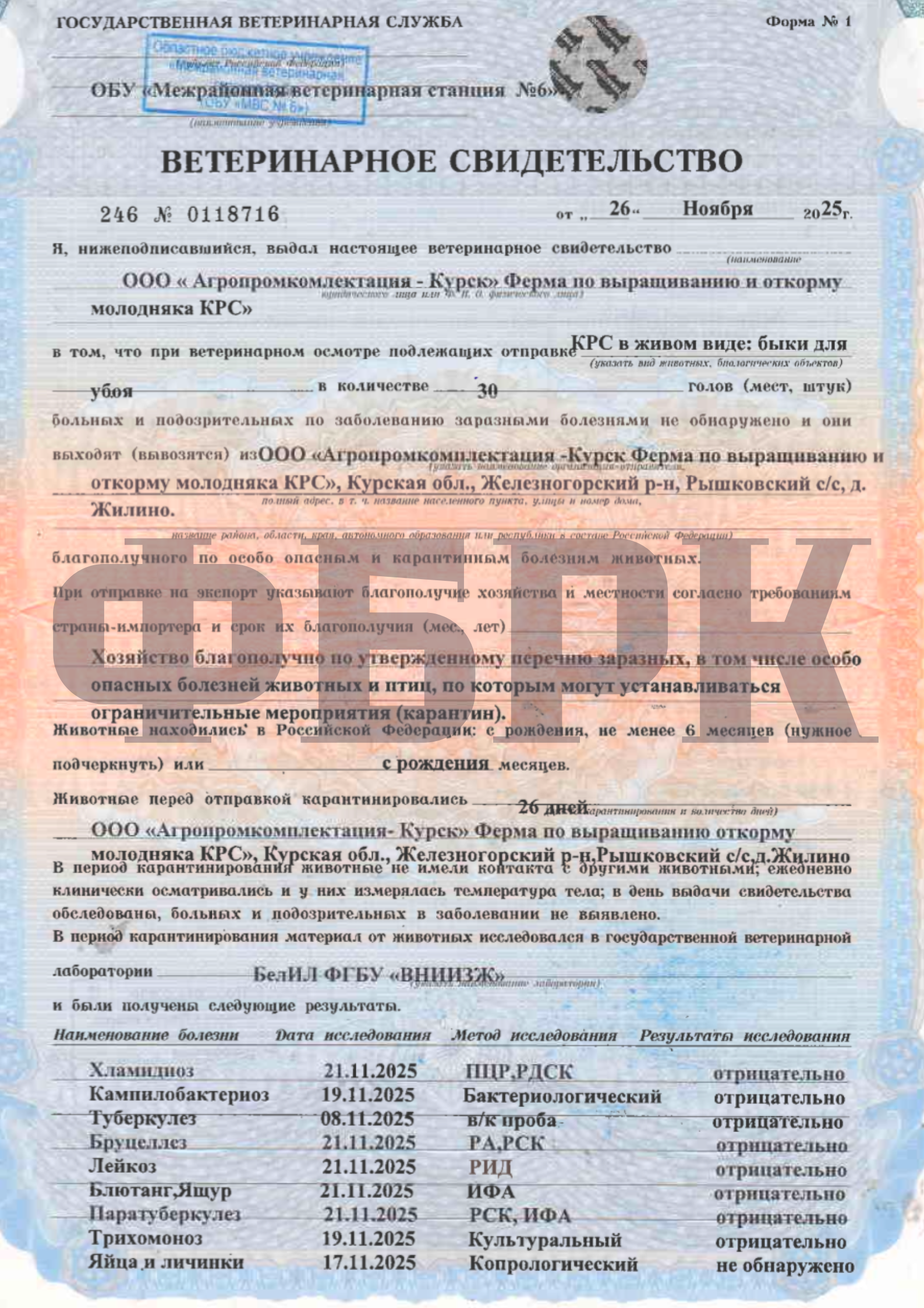 Все животные идентифицированы электронными бирками с префиксом RU1, что соответствует российской системе идентификации. Однако, по мнению источника, это не исключает возможности легализации скота неясного происхождения через оформление российских свидетельств с последующим транзитом через территорию РФ.