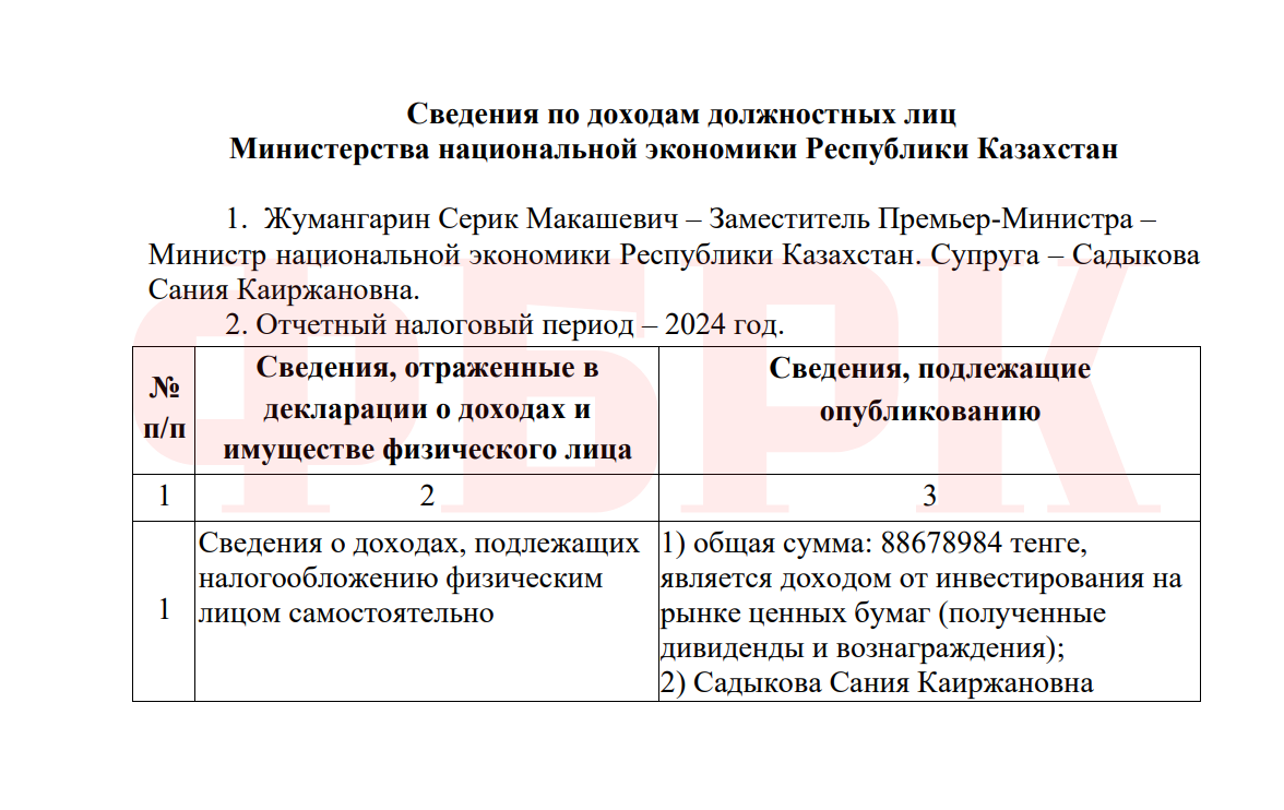 КАКИЕ ДОХОДЫ ЗАДЕКЛАРИРОВАЛА СЕМЬЯ СЕРИКА ЖУМАНГАРИНА
