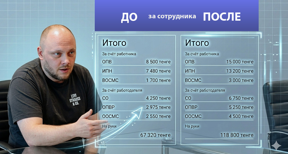 «Давайте начнем с того, что у нас в Казахстане порядка двух миллионов индивидуальных предпринимателей. Раньше они имели право платить налоги с минимальной зарплаты в 85 тысяч тенге, а теперь будут платить со 150 тысяч - и за себя, и за сотрудников. Не будем скрывать, что большая часть работников у ИП показывает «минималку», — заявил Казанцев.