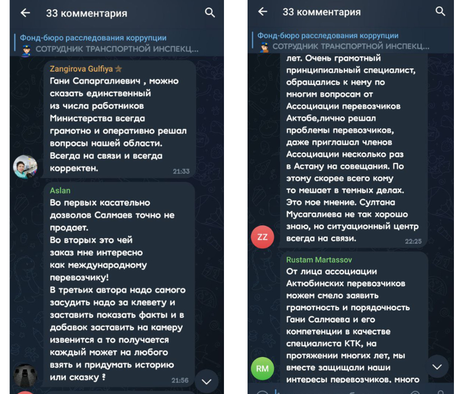 В комментариях появились десятки однотипных сообщений в защиту фигурантов, а в анонимный бот поступили материалы, призванные дискредитировать заявителя Нурсултана Булатбекова. Проверка данных выявила признаки возможной фабрикации, а настойчивость анонимного источника и его манипулятивные приемы подняли вопросы об организованной кампании.