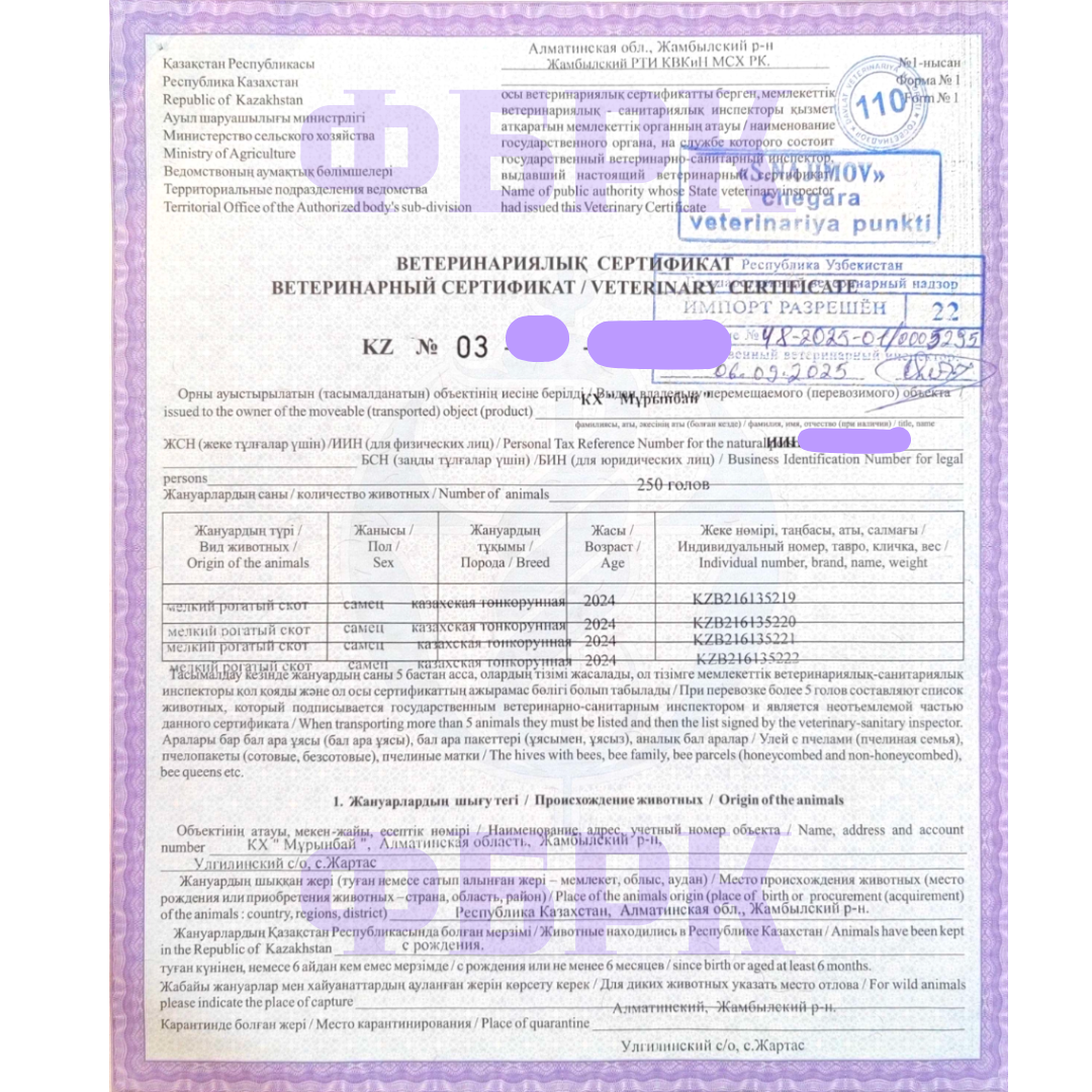 После выхода материала в редакционный бот поступили новые сообщения — на этот раз с другой подборкой документов, касающихся прямого экспорта казахстанского скота в Узбекистан и Таджикистан.