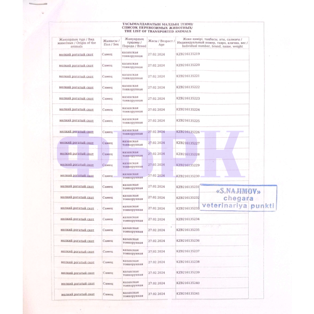 Все предоставленные нам документы, ветеринарные сертификаты, содержат необходимые печати и датированы 2025 годом. В каждом сертификате указано общее количество экспортируемых животных, часто - от 60 до 250 голов. Однако при сопоставлении с прилагаемыми списками перевозимых животных с индивидуальными идентификационными номерами обнаруживаются существенные расхождения.