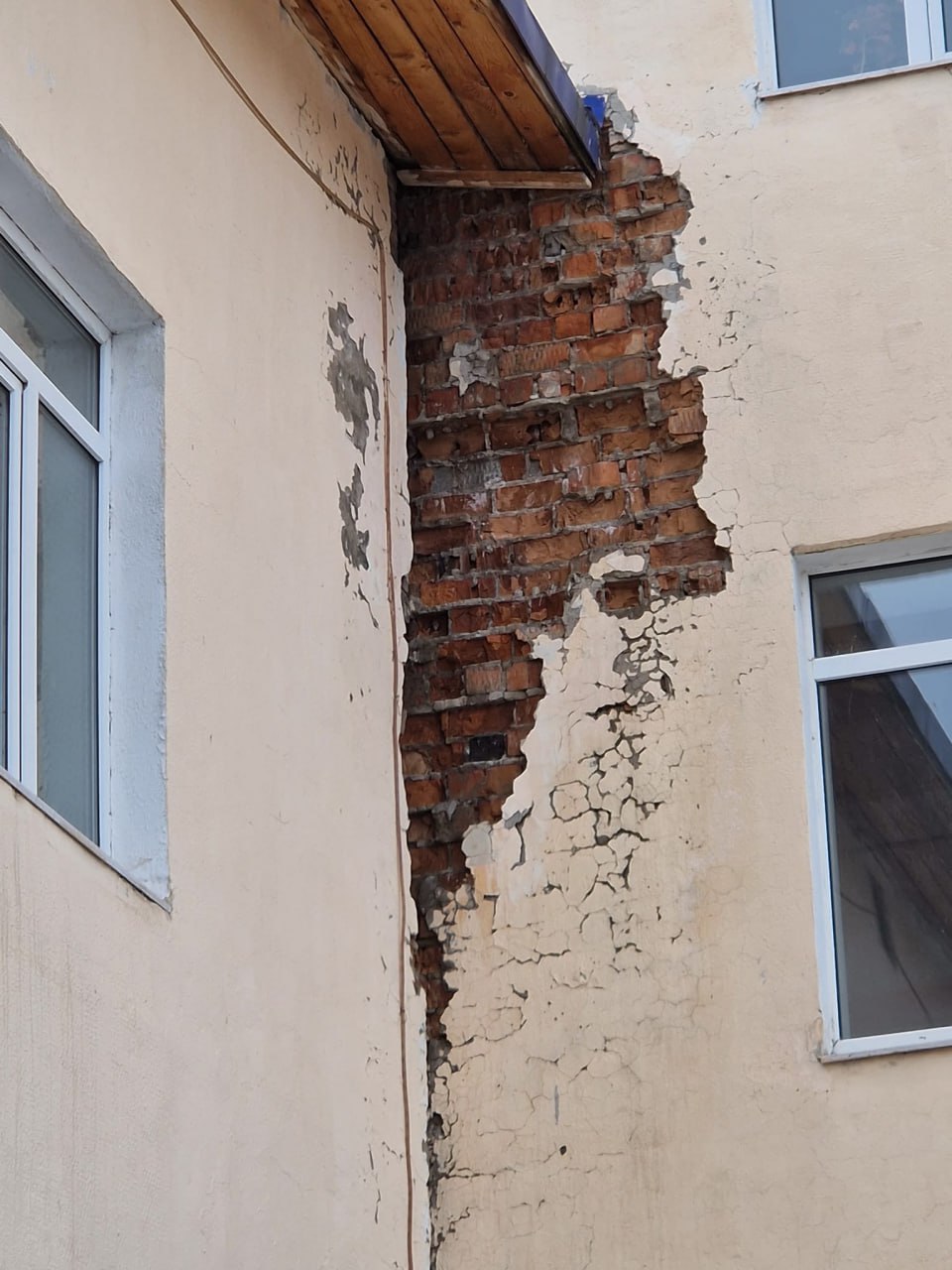 Кроме того, общественник рассказал, что фасадная плитка здания везде отлетела, вентиляционная система не работает, а асфальт вокруг больницы просел, местами его нет вообще.